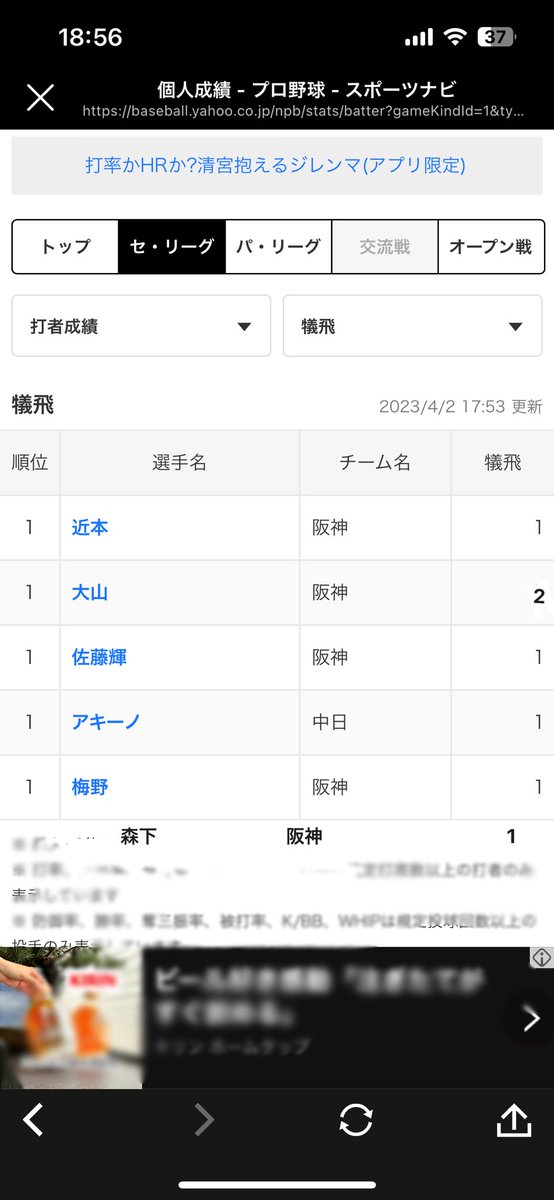 @hanshintigersjp 大山、4試合連続打点!ホームランも見たい!
