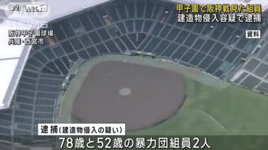 2人は8日、暴力団員の立ち入りが禁止されている兵庫県西宮市の阪神甲子園球場に阪神タイガース対ヤクルトスワローズの試合を観戦するため、立ち入った疑いが持たれています。