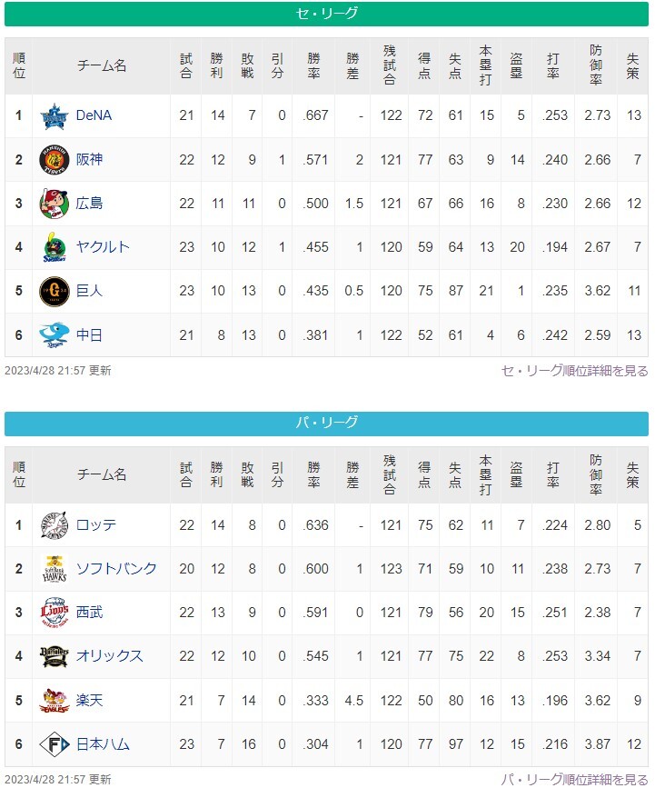 巨人は得失点の失点のほうがヤバいから投手陣さえなんとからなればワンチャンあるけど、中日の場合失点しないで負けてるから絶望感はダンチやな