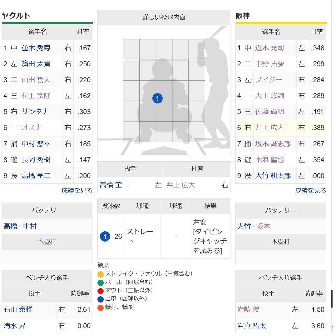今日のゲームは満塁やった1回オモテからの井上広大が空振り三振した3アウト残塁で勝負が見えてた気がする。