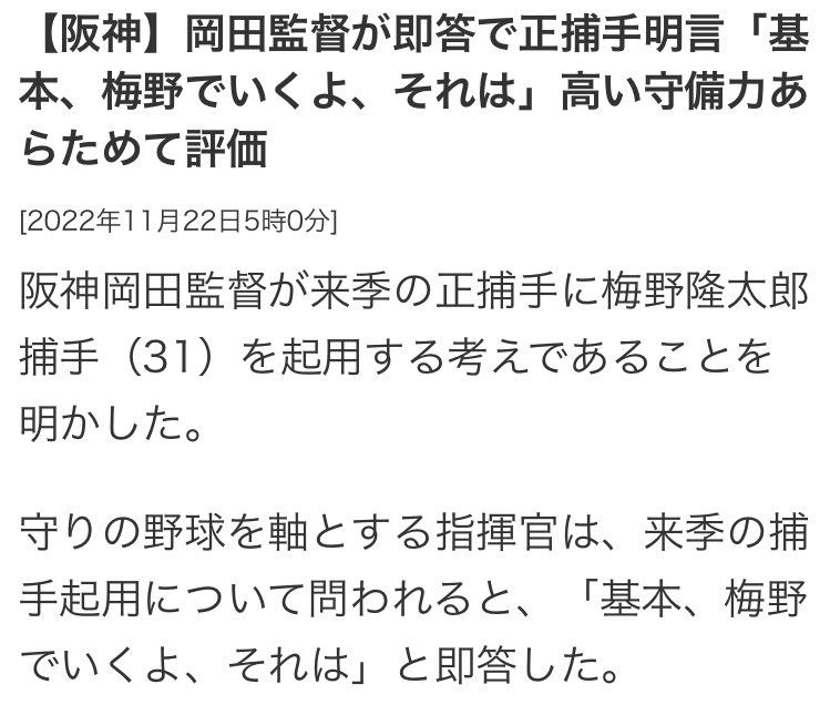 自分が正捕手梅野って言ってもうたから、とことん行くつもりやろうけど、マジでやめてくれ
