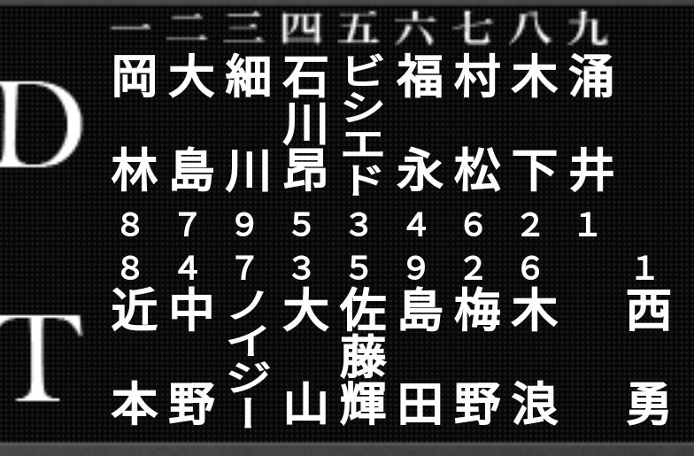 この中日3連戦(2~4日)で恒例の「ゴールデンウィーク こどもまつり」を実施しており、大型ビジョンには「ちかもと(近本)」「さとうて(佐藤輝)」など、両チームの選手名が「ひらがな」で掲出されている。