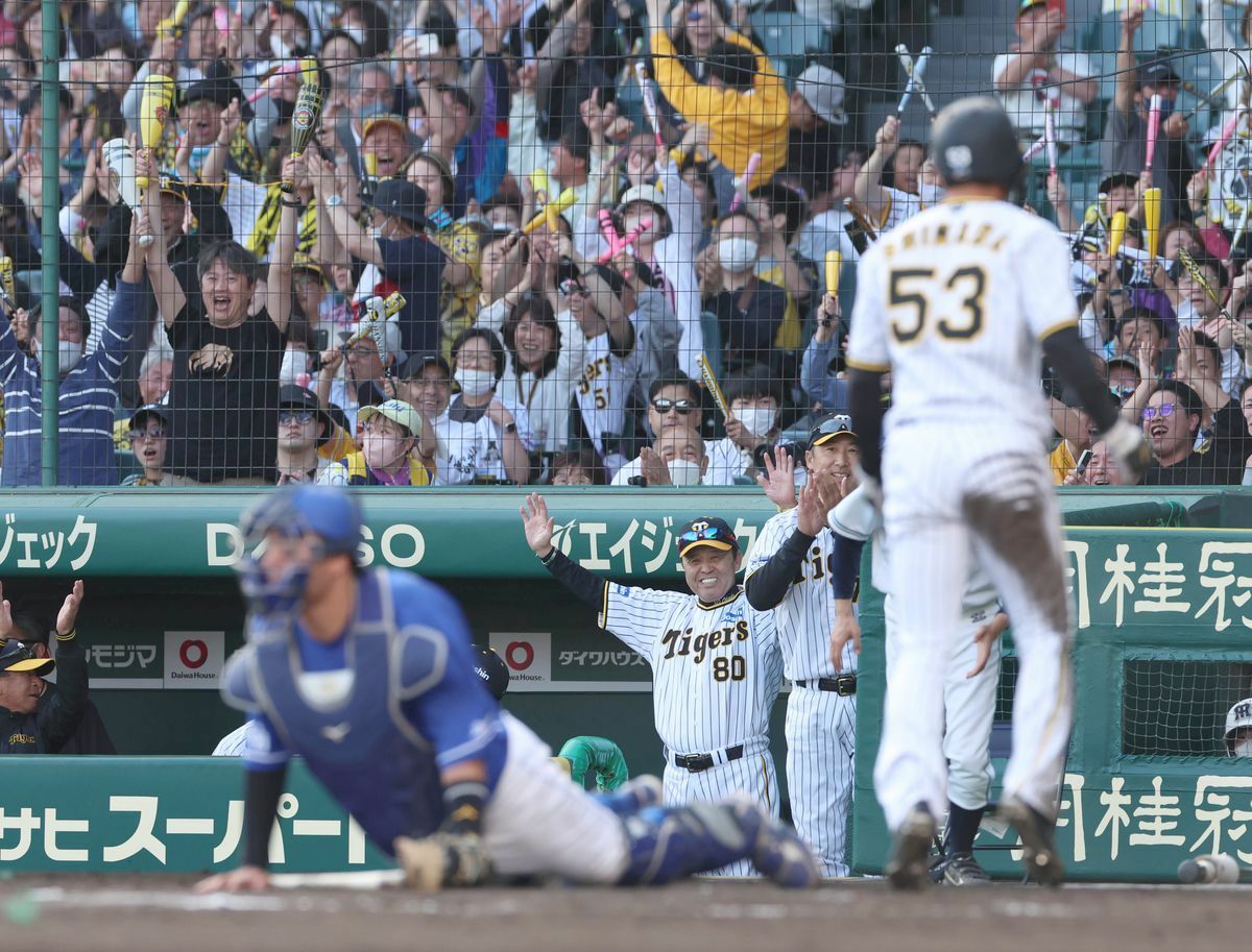 (セ・リーグ、阪神3ー2中日、6回戦、3勝3敗、甲子園)阪神が逆転勝ち。打線は前半は柳を打ちあぐねて六回まで無得点。しかし2点を追う七回、大山の二塁打でつくった2死二塁で坂本が中前に適時打を放って1点を返す。八回には2死一、三塁から大山がレフトへタイムリーを放って2-2と追いつき、続く佐藤輝がライトに勝ち越し打を放った。 先発の伊藤将は四回に柳、五回には石川昂に適時打を浴びるなど、6回11安打2失点。九回に登板した岩崎が今季初セーブをあげた。阪神は連勝で貯金を4とした。