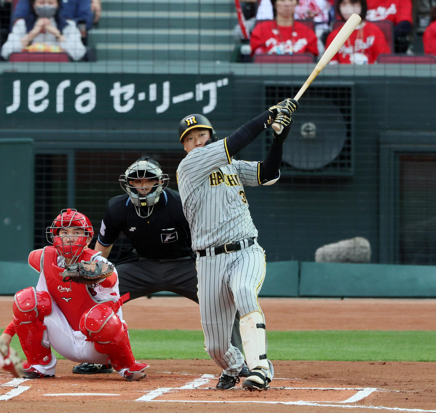 阪神大山悠輔内野手(28)が、29打席ぶりとなる3号先制2ランを放った。初回2死一塁、広島遠藤の143キロ直球を左中間のバルコニー席へ放り込んだ。