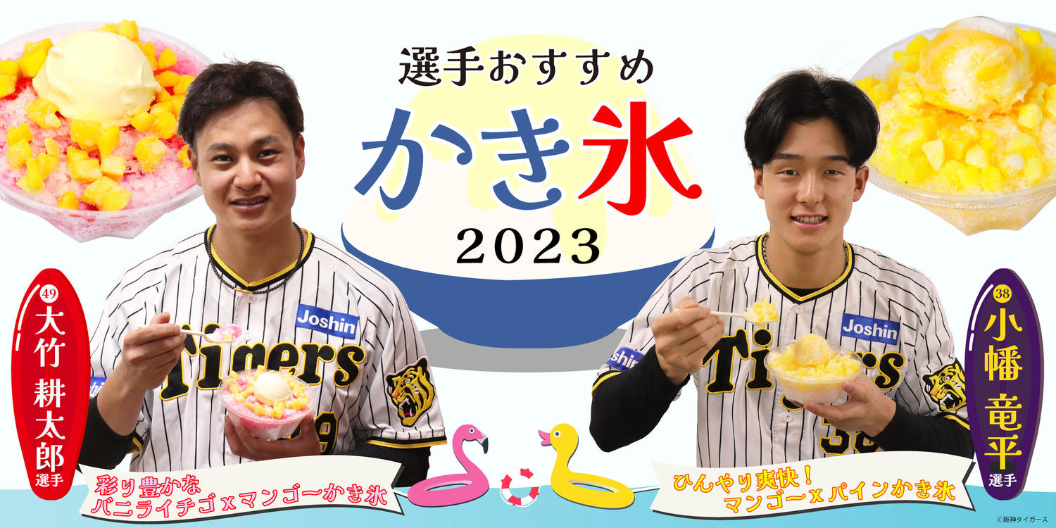 阪神は11日、小幡竜平内野手(22)と大竹太郎投手(27)のおすすめかき氷を販売することを発表した。発売期間は12日のDeNA戦から9月18日のDeNA戦までとなっている。小幡は「ひんやり爽快!マンゴー×パインかき氷」(税込み700円)を推す。ベースのマンゴー味に見栄えが良いマンゴーマーブルのアイスを乗せ、小幡選手の大好きなパインフルーツをトッピングされている。背番号38は「マンゴー味のかき氷とマンゴーマーブルのアイス、そして僕の大好きなパインフルーツとの食べ合わせが最高です。たくさん食べて、ひんやり爽快な気分を味わってもらえたらうれしいです。ぜひ食べてください!」と呼びかけた。大竹は「彩り豊かなバニライチゴ×マンゴーかき氷」(同700円)をおすすめした。左腕が大好きなイチゴ味のかき氷に、甘さたっぷりのバニラと少し酸味のあるマンゴーフルーツを加え、バランスよく仕上げている。「自分自身が幼い頃によくかき氷を食べていたので、特にお子様に食べてもらいたいです。フルーツもぎっしり詰まっているので、ボリューム満点だと思います。僕のかき氷を食べたいと思ってもらえるようにピッチングも頑張ります!」と意気込んだ。