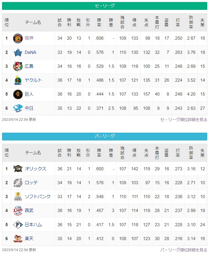 あの球団交流戦の前に貯金無くなりそうで草