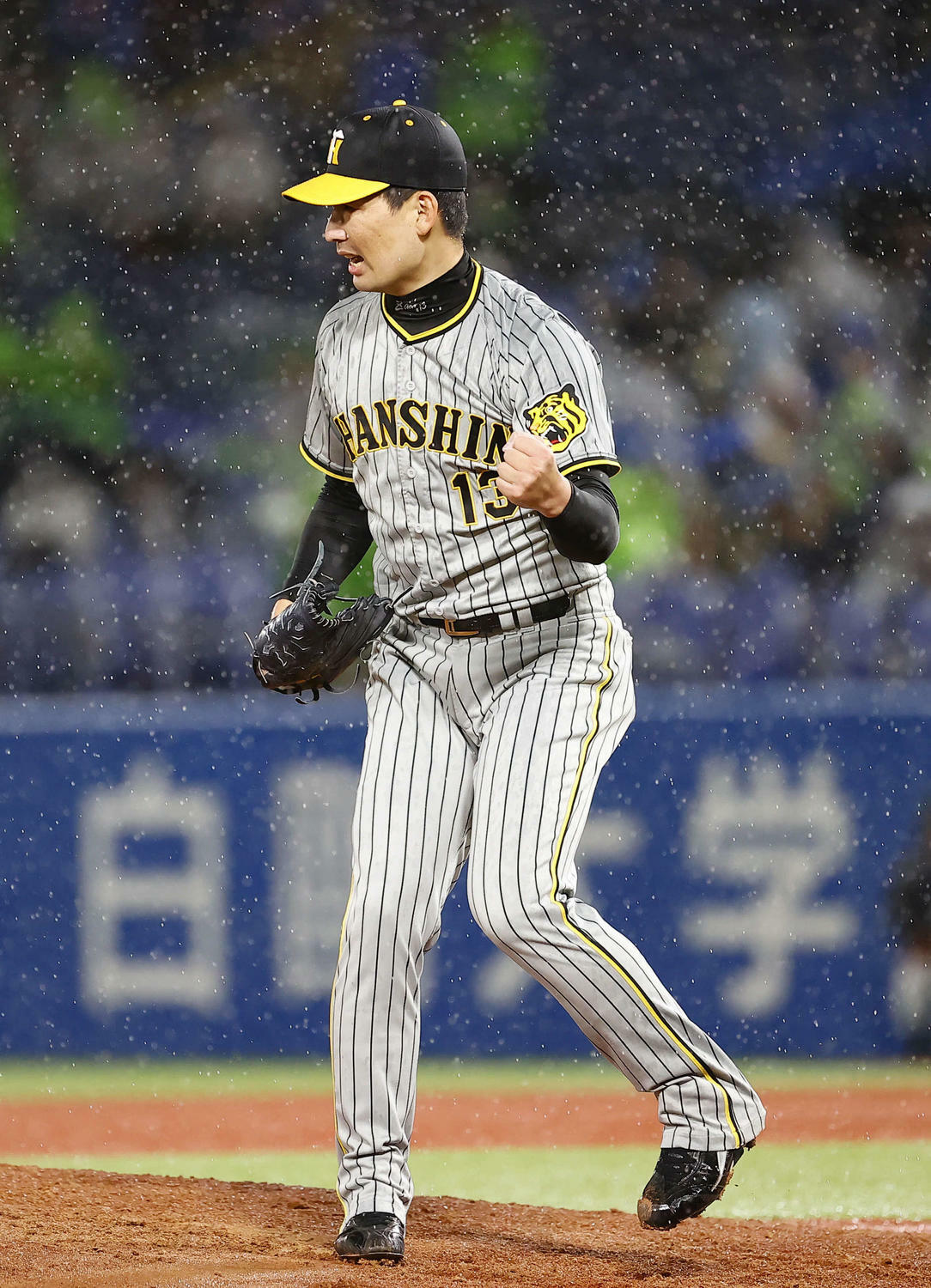 <ヤクルト3-6阪神>◇23日◇神宮阪神岩崎優がピンチをしのぎ、7セーブ目を挙げた。3点差に迫られた9回2死一、三塁で登板。雨が強まる中、代打三ツ俣に2ボールとするとマウンドに土入れを要求した。冷静に足元を整え、そこから3球連続ストライクゾーンに投げ込み空振り三振。本塁打を浴びれば同点の場面でも「準備はしていました。それが仕事なので」と涼しい顔だった。岡田監督は「今日は岩崎は使わんでいこうと思ったけど、しゃあないわな、ああなったら」。湯浅の不在の中、代役守護神が仕事を果たした。