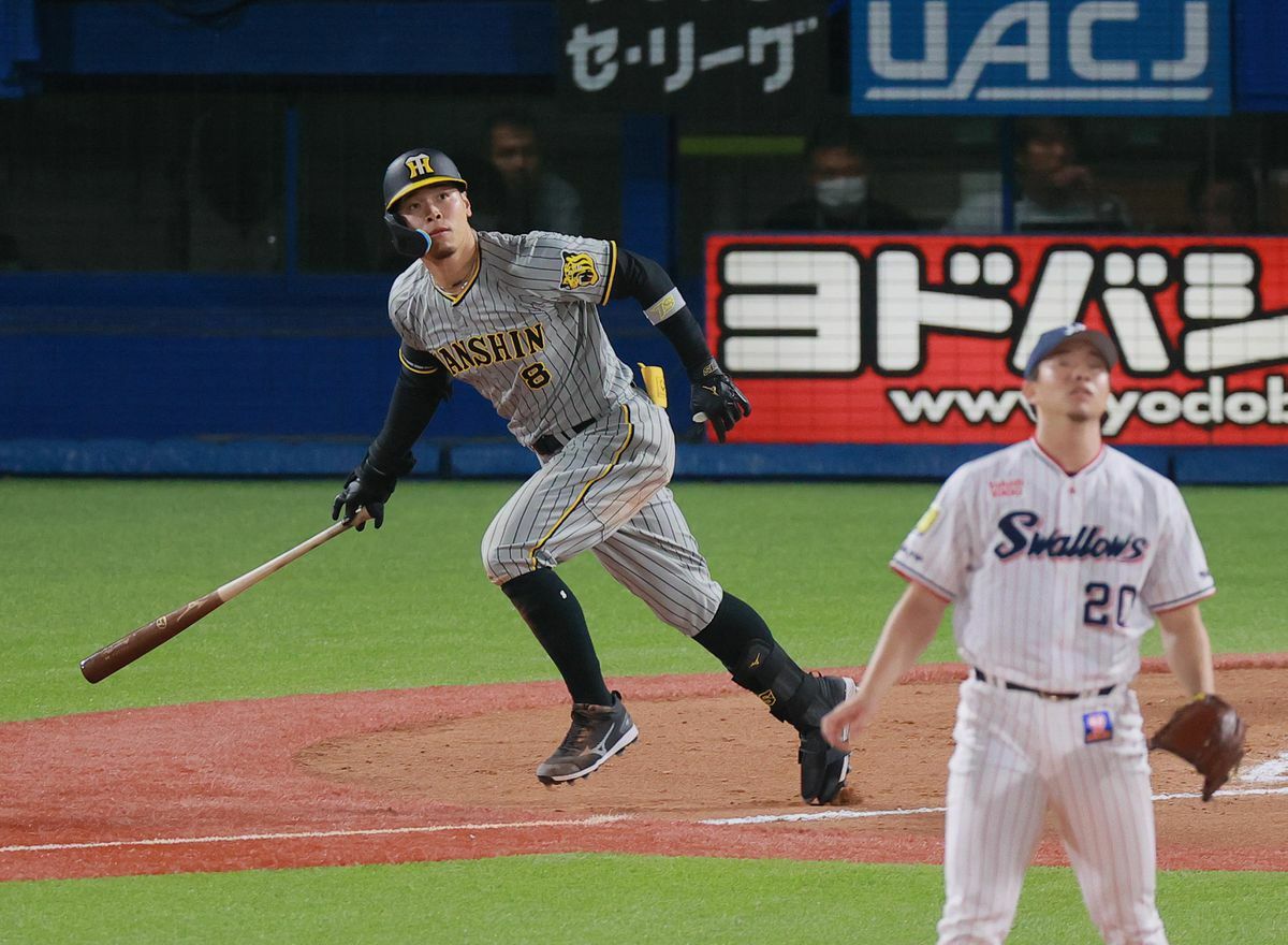 なおも満塁で佐藤輝が、走者一掃の3点二塁打を放って試合を決めた。0-2で迎えた四回に4番・大山が5号ソロを放って反撃ののろしを上げると、七回には5試合ぶりにスタメン出場したミエセスが2号ソロを放って同点。八回は近本がヤクルト・清水の直球を捉えて、右翼席へ3号ソロ。3本のアーチで得点を奪った。