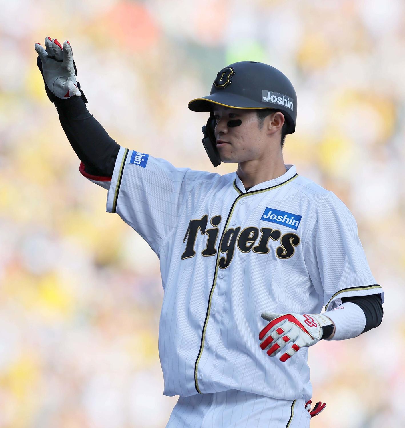 <阪神3-2巨人>◇27日◇甲子園阪神中野拓夢内野手(26)が連続試合安打を「15」に伸ばした。7回2死二、三塁から、中前へ2点適時打。「自分の前で近本さんが打ってくれたので、楽な気持ちで打席に入れましたし、後ろにつなぐって気持ちだけを持って打席に立ったんで、その結果いいタイムリーが打てたかなと思います」。自己最長の連続試合ヒットをさらに更新。終盤に貴重な2点をたたき出した。出塁だけではなく、打点も稼ぐ。21打点として佐藤輝、大山、近本、ノイジーに続いて20点台をクリアした。チャンスをつくり、チャンスを実らせる1、2番だ。「狙い球をしっかりと絞れている結果が、今年に関しては得点圏で打てる要因かなと思っています。下位から上位にチャンスがとても多く回ってくるので、近本さんと一緒に走者をかえせれば」。打撃上位10人中、6~8位が近本、中野、8番を打つ木浪で、10位に4番の大山がランクイン。相手に息つく暇を与えない攻撃力で、切れ目なく打ってかえせる打線を形成している。【堀まどか】