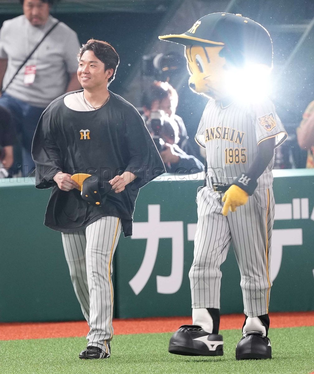 「西武1-3阪神」(30日、ベルーナドーム)あの日からちょうど2年。2021年5月30日。相手も舞台も同じ。プロ初登板となった阪神・村上頌樹投手は三回途中5失点KOされた西武にリベンジした。初回に2点の援護を得ると、軽やかな投球スタイルで次々にアウトの山を積み上げた。四回に若林の適時打で1点差に詰め寄られたが、2死三塁で昨年までのチームメートである陽川を空振り三振に仕留めるなど、今季最多112球の力投で5勝目を挙げた。今季、すい星のごとく現れた大卒3年目右腕。四回を投げ終えた時点で規定投球回に到達し、防御率1・41でトップに躍り出た。勝率・833は巨人・戸郷と並んでトップタイ、奪三振数54も中日・小笠原と並ぶトップタイとして現在、投手三冠。5勝はチームメートの大竹に次ぐリーグ2位タイだ。交流戦初戦を任さた岡田監督の期待に応えた力投。「チームに勢いをつけられるピッチングをしたいと思っていたので良かったです」。チームは2007年以来、16年ぶりの9連勝。31日の西武戦に勝てば、球団新記録の月間20勝となる。