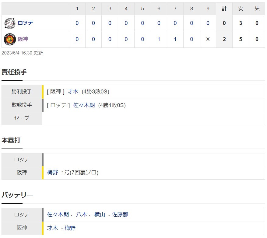 【一軍】阪神2-0ロッテ