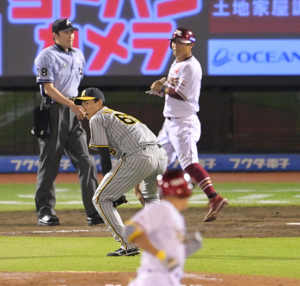 「楽天6-4阪神」(8日、楽天モバイルパーク)阪神は相手のミスに乗じて八回に逆転に成功。1点リードの九回を守護神・湯浅に託し、今季最多の貯金19まであと1アウトに迫っていたが、右腕が2四球から招いたピンチで痛恨の逆転サヨナラ3ランを被弾。岡田監督は「今はしんどいやろ」と湯浅の配置転換を示唆した。3日・ロッテ戦で3失点するなど、ここ3試合中2試合で失点を重ねており、どこに原因があるのか阪神OBの中田良弘氏が解説した。「実は今だけじゃないんだよね、湯浅の調子が良くないのは」と語り始めた中田氏。この日、2四球を与えたように思ったところに制球できていない場面が印象に残る。「軸足に体重が乗り切らないまま、体が前に行ってるから、腕の振りが遅れる分、ボールが浮いちゃうんだよね」と制球難の原因を指摘した。制球が乱れ、カウントを悪くするケースが増えていることで、湯浅の持ち球であるフォークボールが有効に使えていないという。「湯浅のいい時って、真っすぐで押して追い込んで、フォークで仕留めるっていうケースが多いんだけど、今年はカウントを有利にできていないから、フォークをうまく使えてないし、自分に不利なカウントになった時に思い通りの真っすぐが投げられていないから、苦労しているよね」と、イメージ通りに投げ込めていないことが、投球を苦しくしていると分析した。岡田監督が配置転換を示唆したということについては「当然だと思う。今のままでは厳しい。湯浅には真っすぐで空振りを奪えるようになるまで、ストッパーより前のポジションで投げていくしかないと思う」とし、代役守護神には「岩崎しかいないだろうね。ストッパー経験もあるし。ただ、岩崎もこの2試合、少し不安定なところを見せ始めているから、気をつけなきゃいけない」と話した。阪神は9日に空路札幌へ移動して日本ハムとの3連戦に臨み、13日からは甲子園でオリックス、ソフトバンクとの6連戦に臨む。
