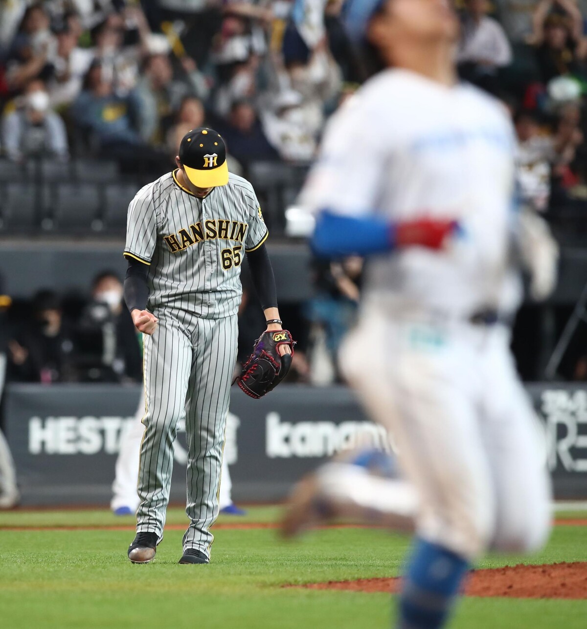 「日本ハム0-1阪神」(11日、エスコンフィールド)阪神の湯浅京己投手が1点リードの九回に登板。2死一、三塁のピンチを招いたものの、雪辱の8セーブ目を挙げた。先頭の加藤豪に対してはカウント2ボールとなったが、高め148キロで押し込んで右飛に打ち取った。続く万波は140キロのフォークで空振り三振。しかしマルティネスを四球で歩かせ、続くハンソンに中前打を浴びて2死一、三塁のピンチを招いた。ここで安藤投手コーチがマウンドに向かい一息入れる。奈良間には初球のフォークでストライクを先行させると、カウント1-1から内角フォークで投ゴロに仕留め、無失点で試合を締めた。湯浅は前回登板の8日・楽天戦で1点リードの九回、小深田に逆転3ランを被弾した。マウンドで思わずしゃがみ込み、呆然とチームの敗北を見つめた。札幌移動後は投手コーチと二人三脚で修正に取り組んでいた右腕。最後のアウトを奪うと笑顔で仲間とハイタッチをかわし、今季9度目の完封勝ちに貢献した。
