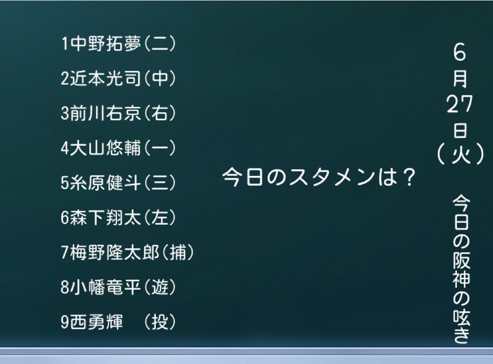 近本君と中野君の打順は今日はどうするのかな?あと前川右京選手は?