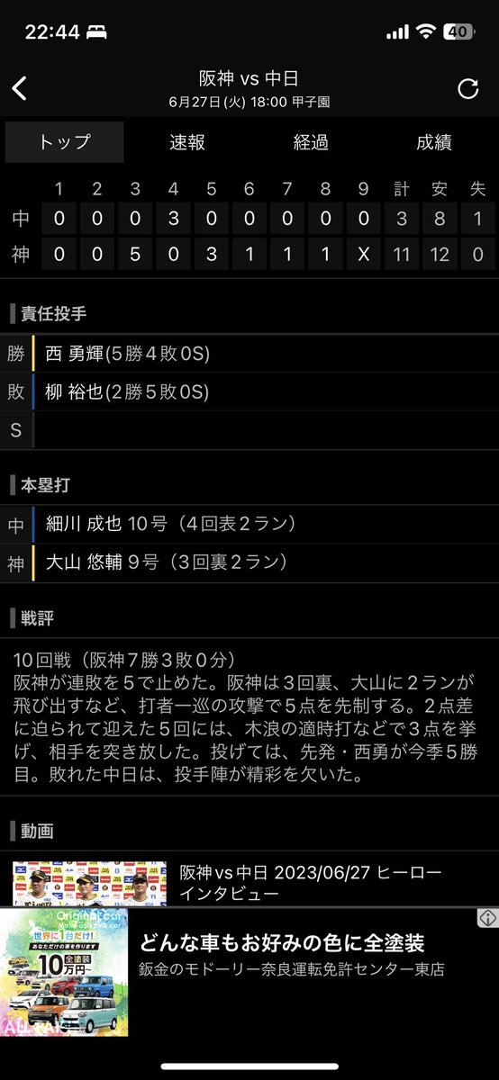 前川と木浪が猛打賞!🧨💥大山9号!🌈🚀 https://twitter.com/tigersdreamlink/status/1673667882914308109 …