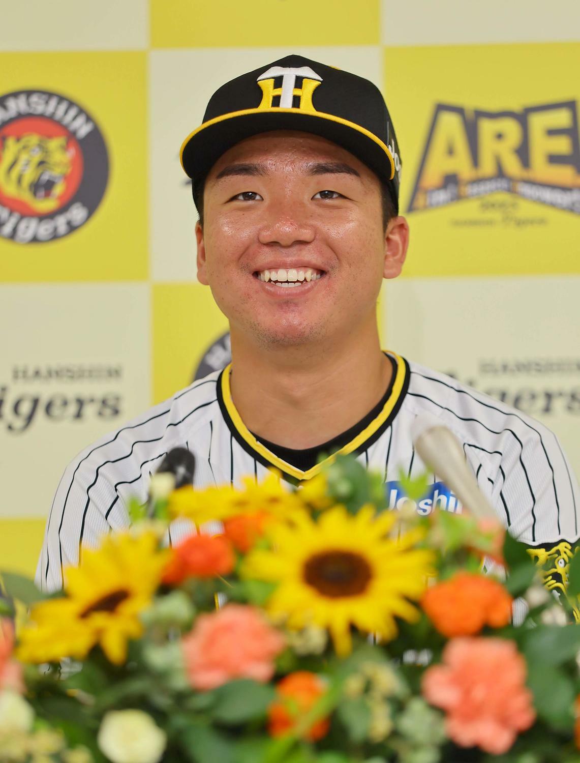 マイナビオールスターゲーム2023(7月19日=バンテリンドーム、同20日=マツダスタジアム)のファン投票最終結果が28日、発表され、阪神勢が全9部門で1位を独占した。1球団で過去最多だった03年阪神の7部門9選手を上回る、9部門10選手が選出された。プロ3年目でブレーク中の村上頌樹投手(24)が、セ・リーグ投手部門1位で初めて選出された。「まだ実感がわいてないというか、まさかって感じです」。DeNAバウアー、巨人戸郷らを抑えてのトップ。それも「ノミネート外」から異例の選出だ。投票はマークシート方式。ノミネート選手への投票は氏名の1カ所だが、ノミネート外選手への投票は球団名、守備位置、背番号の3カ所をマークする必要がある。投票のしやすさから過去のファン選出はノミネート選手がほぼ上位を占めてきた。「ノミネートされてなかったので、ファンの皆さんに手間をかけていただいて選ばれたので、本当に感謝したいです」と喜びをかみしめた。初めての球宴だが、多くの先輩がついている。阪神勢から10人が選出されたことについて「周りを見ても、いつも通りだなと(笑い)。オールスターって感じがしないです」とぶっちゃけ、「見慣れている光景なので、あまり緊張せずにいけるかもしれないです」と笑った。今季は開幕ローテーション入りこそ逃したが、10試合に登板し5勝3敗、防御率1・83。4月12日の巨人戦で7回完全投球を披露しインパクトを残すと、同22日の中日戦では9回完封でプロ初勝利を飾った。昨年までは「いちファンとして楽しんでいた」という夢の舞台に、シンデレラボーイが立つことになる。「自分は身長もそこまで高くない、球もそこまで速くない。そういう子たちもまだまだいると思うので、そういう人に活躍できるんだっていうのを見せたい」。身長175センチの「虎の村上様」が、堂々とオールスターに挑む。【中野椋】