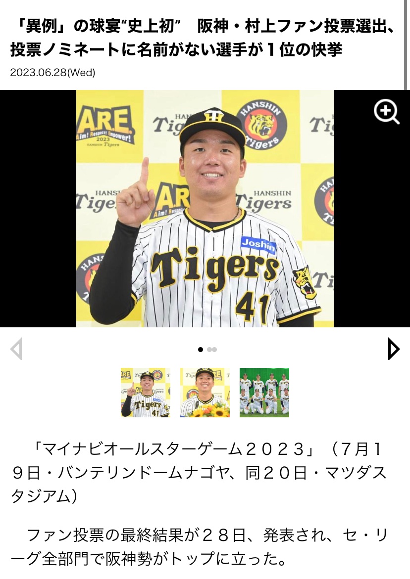 【球宴】“ノミネート外の男”阪神村上頌樹が初選出「周りを見てもいつも通りだなと(笑い)」(日刊スポーツ)