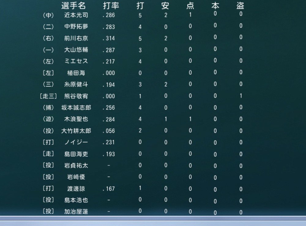 今日の成績打者編です