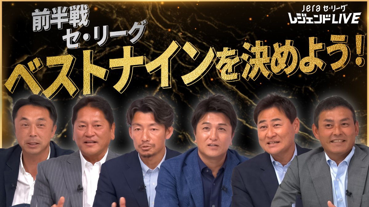 DeNA・佐々木主浩氏、阪神・鳥谷敬氏、巨人・高橋由伸氏、広島・前田智徳氏、中日・川上憲伸氏の5人のレジェンドOB(ヤクルト・宮本慎也氏は欠席)が公式配信番組「JERA セ・リーグ レジェンド LIVE」で、前半戦のベストナインを選出した。それぞれがベストナインを発表し、その後に話し合いで決定。まずは満場一致の抑え投手・マルティネス、一塁手・大山、外野手の細川が決まった。先発投手は佐々木氏が阪神・大竹、鳥谷氏、高橋氏が巨人・戸郷、前田氏、川上氏が阪神・村上を選出。最終的には防御率トップの村上が選ばれた。三塁手は宮崎、岡本和で難航。鳥谷氏は三塁手にDeNAの宮崎を選び、巨人の岡本和を外野手で選出。「どうしても入れたかったので」と説明すると、他のOBから「その手があったか」の声が上がったが、最終的には宮崎に軍配が上がった。佐々木氏が「該当者なし」とした遊撃手は、木浪、坂本の名前が挙がったが、8番打者として阪神の躍進を支えたとして木浪に決定。外野手は守備の貢献度も含めて関根、最後の一人は西川、秋広を挙手制で選び、秋広に決まった。選出されたベストナインは以下の通り。▼先発投手 村上(阪神)▼中継ぎ投手 清水(ヤクルト)▼抑え投手 マルティネス(中日)▼捕手 大城卓(巨人)▼一塁手 大山(阪神)▼二塁手 牧(DeNA)▼三塁手 宮崎(DeNA)▼遊撃手 木浪(阪神)▼外野手 細川(中日)、関根(DeNA)、秋広(巨人)