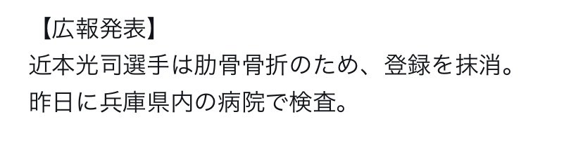 いちばん見たくなかった近本光司の抹消公示 https://twitter.com/hanshintigersjp/status/1676125466850361344 …
