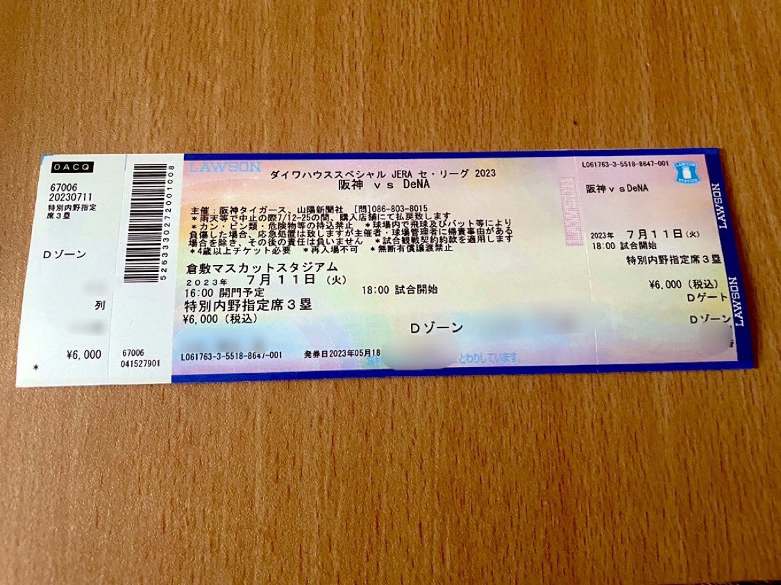 阪神は11日のDeNA戦を倉敷マスカットスタジアムで開催し、2019年以来4年ぶりに甲子園、京セラドーム以外の地方で試合を主催する。開催地はすでに盛り上がりを見せており、チケット発売初日の5月16日には販売所となった岡山市内の山陽新聞社のロビーで約300人が購入。長蛇の列の先頭の購入者は、前日の夕方から並んで発売開始を待った。同社の事業本部の担当者は、阪神が5月に9連勝を記録するなど好調だったことと、久しぶりの倉敷開催を理由に挙げ「売れ行きは過去最大じゃないですかね」と話した。なお、入場券は前売りで完売したため、当日券の発売はない。試合では、五回裏終了時に600発の花火が打ち上げられる予定(天候次第)。さらに当日は公共交通機関の混雑緩和の対策として倉敷駅を通るJR線を増便。試合終了後、岡山方面を3本、広島方面を2本増便する。その他、通常ダイヤの電車も車両を増やして対応する。