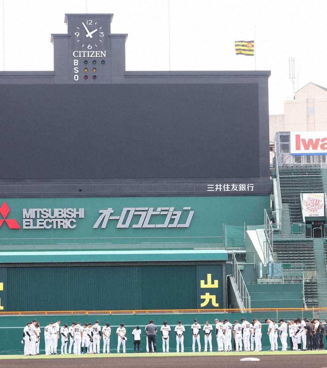甲子園でも1軍選手、スタッフがセンター芝生で黙祷。 pic.twitter.com/Kc2juRGzaA