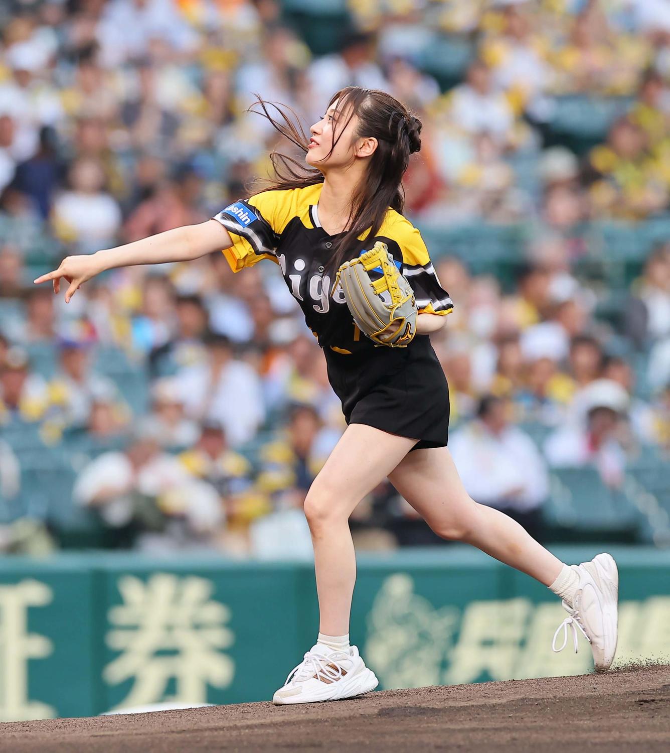 <阪神-巨人>◇27日◇甲子園NMB48の川上千尋(24)が始球式を務めた。「ウル虎の夏2023」仕様のユニホームに黒の短パン姿で登場。大きくお辞儀してから臨んだ。巨人吉川の背中へそれるも、捕手梅野のミットにノーバウンド投球を決めてみせた。大の虎党として知られる川上は、グラブにも阪神愛を込めていた。イエローとグレーを基調としたグラブに、黄色で「A.R.E.」と刺しゅうを施したオーダーグラブを用意。「期待をグローブにも込めていまして『A.R.E.』と。今日のためにオーダーしたグローブで挑ませていただきました」と笑顔で、こだわりを明かした。