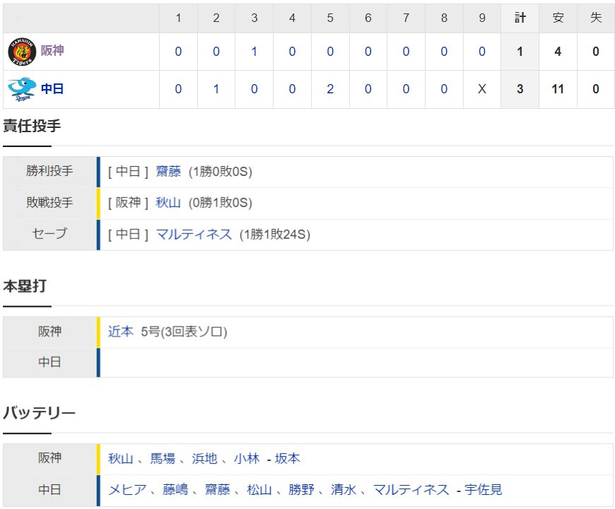 近本のホームランだけや