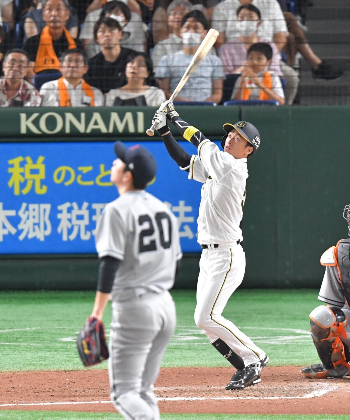 「読売ジャイアンツ2-5阪神タイガース」(10日、東京ドーム)阪神は1点を追いかける七回、相手が重ねた守備の乱れを突いて、一気に逆転に成功した。先頭のノイジーが右中間フェンス最上部直撃の二塁打でチャンスメーク。続く梅野の高くバウンドした打球で戸郷が三塁に送球したが、野選となって無死一、三塁に。木浪の打席で一塁けん制を中田翔が捕球ミスでそらす間に、代走の島田が同点のホームを駆け抜けた。なおも2死一塁から、近本が右翼スタンドへ6号2ラン。滞空時間の長い一発で2点を勝ち越して、戸郷をノックアウトした。九回には代打の代打・原口が左翼席に2号2ランを放った。阪神先発の才木は7回1/3を8安打2失点で6勝目。初回は先頭の吉川と坂本をともに直球で連続三振に斬って最高の立ち上がりとなったが、三回先頭の長野に初安打となる二塁打を浴びると、犠打を狙った戸郷の打球が絶妙な場所に転がって内野安打に。無死一、三塁から吉川の二ゴロ併殺の間に長野が生還して先制を許した。その後は安定した投球を続けた才木だったが、八回先頭の坂本に13号ソロを浴びて1点差に迫られた。さらに1死一、三塁のピンチを背負ったところで継投となったが、加治屋が中田翔を空振り三振で仕留めると、スイッチした島本が代打・岸田を三ゴロで抑えて、窮地を切り抜けた。連投のため、試合前に帰阪していた岩崎不在の九回はケラーが締めた。1点差に迫られた八回の継投、九回に代打の代打を告げて原口が放った2号2ラン。巨人・原監督との腹の探り合いにも勝った岡田監督の采配が随所で光った。