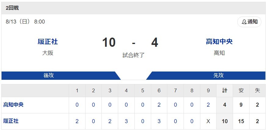 2回戦:8/13(日) 8:00