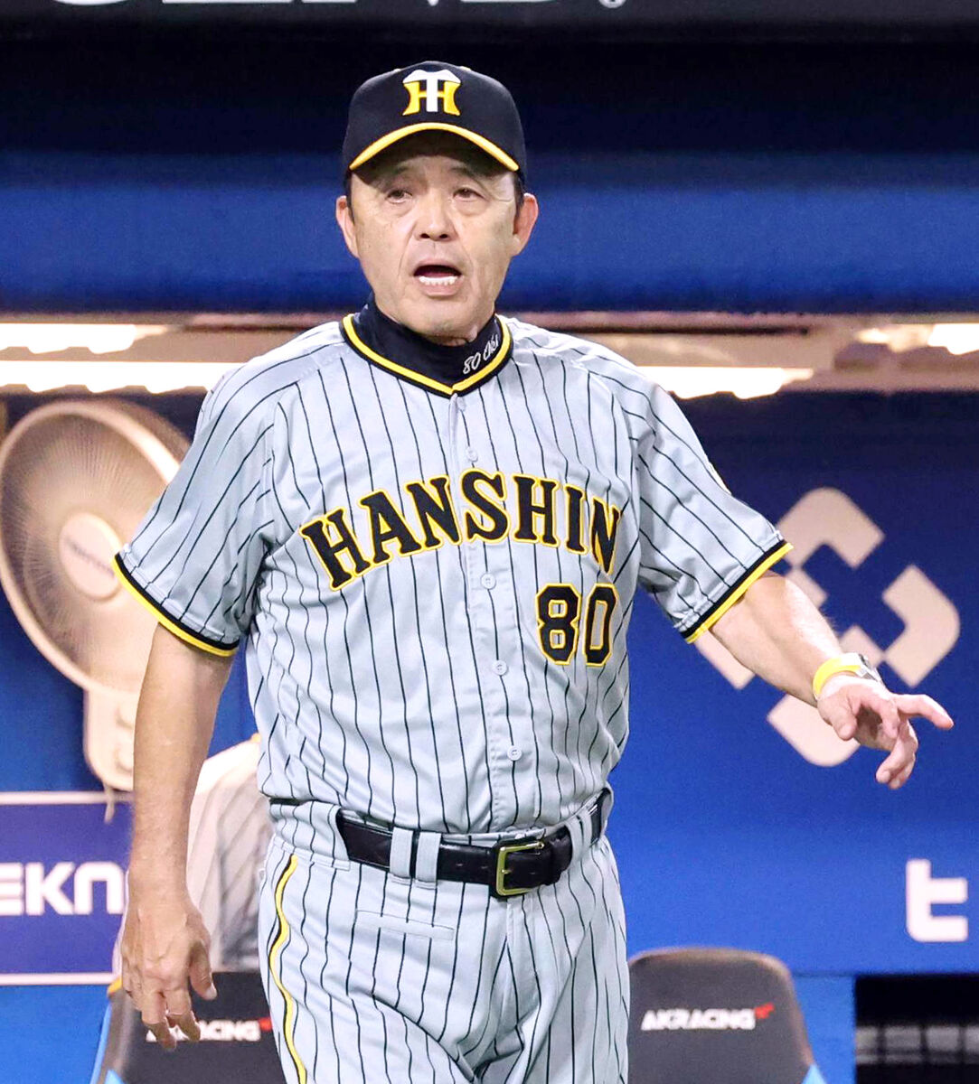阪神・岡田彰布監督が3回の攻撃中の珍プレーを振り返った。1点を追加して、なおも無死一塁。