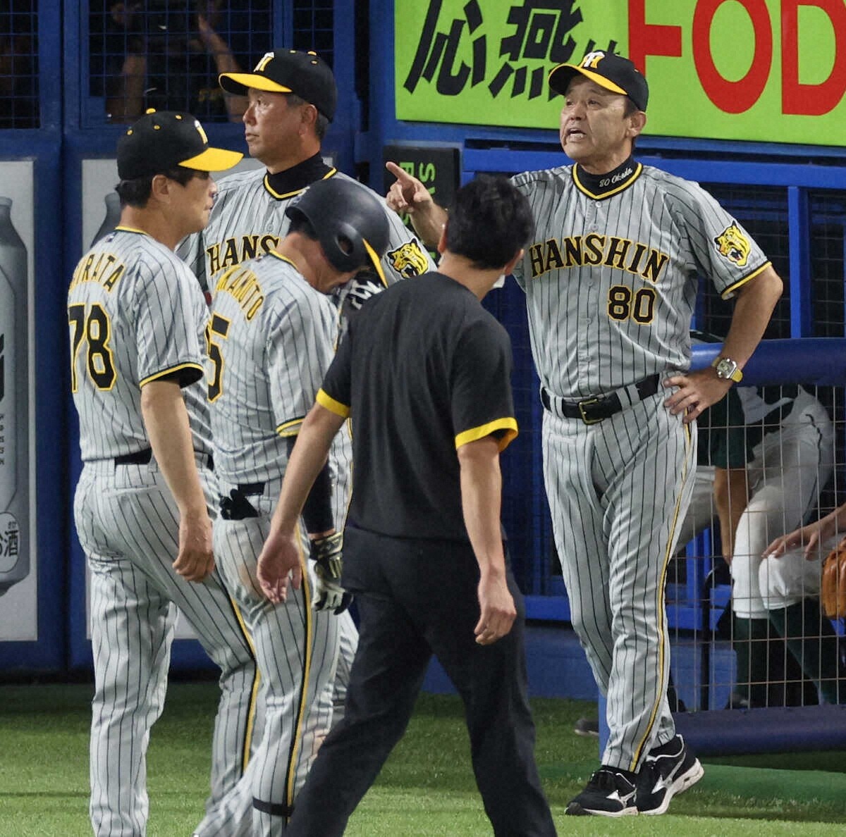 阪神の岡田彰布監督は試合後、近本光司外野手が大量リードの九回先頭で右脇腹に死球を受けたことで「情けないなあ、2年連続優勝のチームが」と怒りをにじませた。