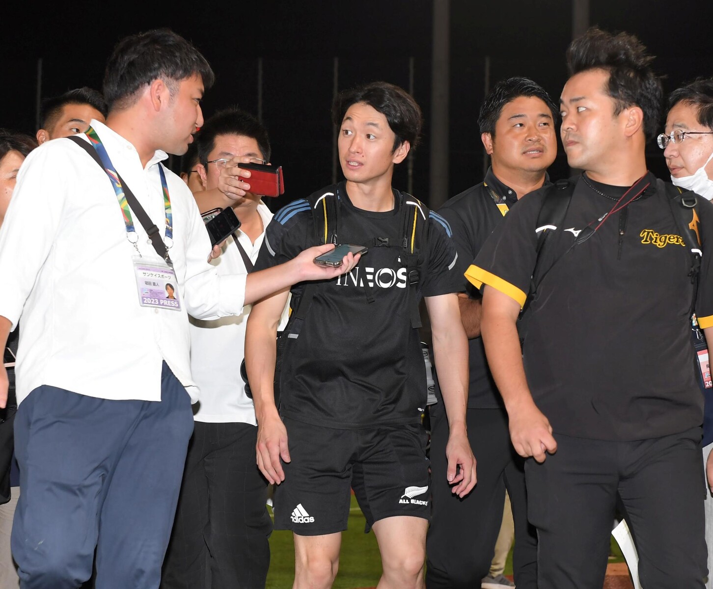 「東京ヤクルトスワローズ1-7阪神タイガース」(3日、神宮球場)阪神の近本光司外野手が九回先頭で右脇腹に死球を受けて途中交代した。山本の2球目が直撃すると、そのまま打席に倒れ込んで激痛に表情をゆがめた背番号5。そのまま代走・小野寺が告げられて途中交代となったが、試合後は報道陣に「当たってるんで。当たったら痛いですよね。そりゃ」と言いつつ「あんまり何もなかったのでいいと思います。別に」と問題がないことを明かしていた。この日は2本の三塁打で貢献。それでも「得点圏で打てなかったというのが残念です」と語っていた。