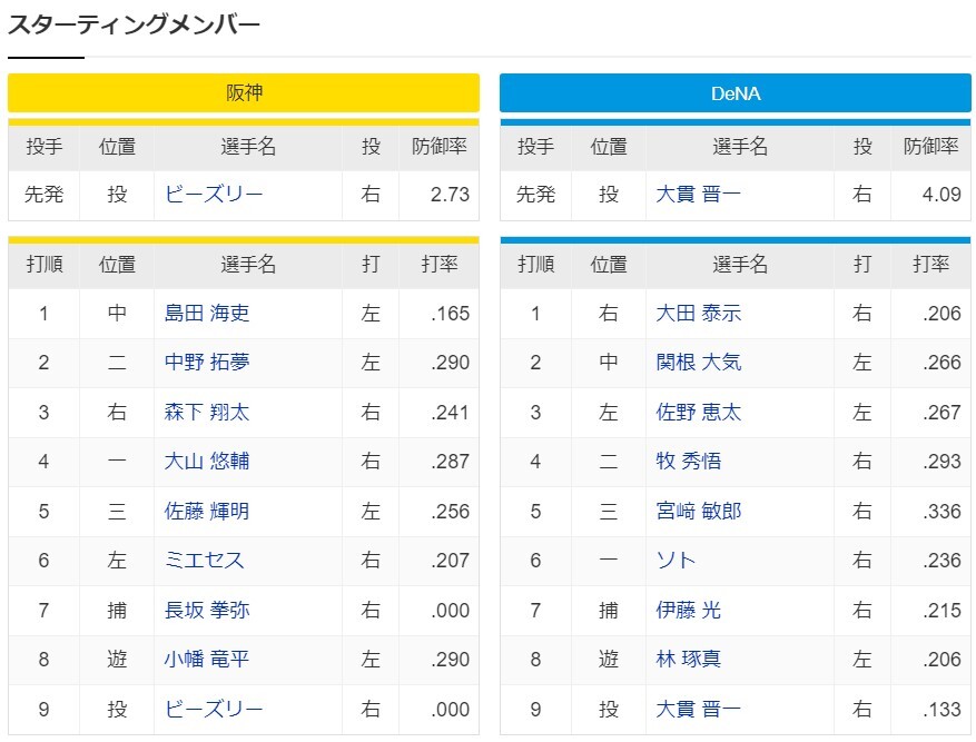 横浜に甲子園で連敗してるのがイヤな感じよな