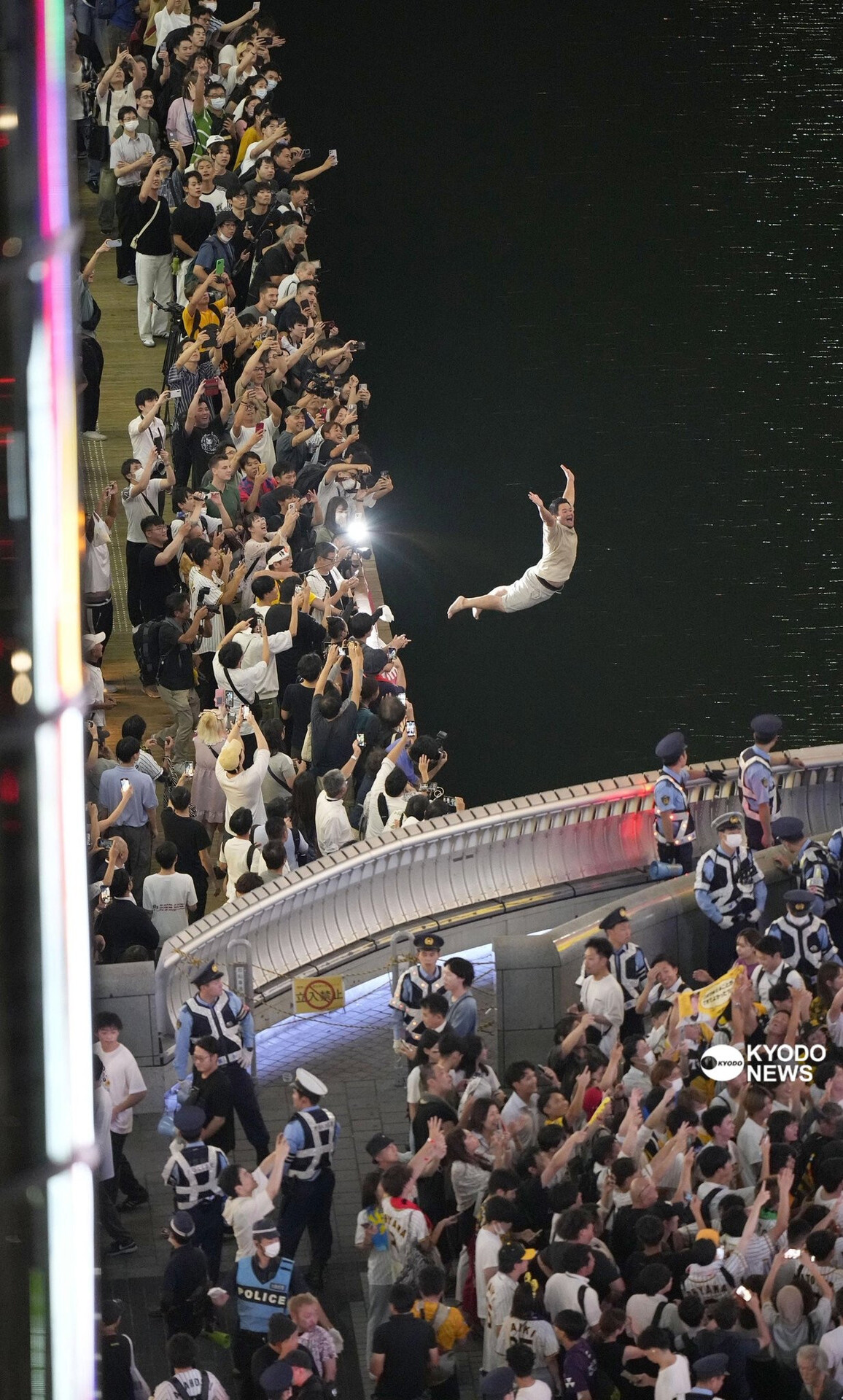 各社の報道によれば、道頓堀では大腸菌が検出されるなど、人が泳ぐのには適していない川だという。飛び込んだことで体調を崩した人もいる。
