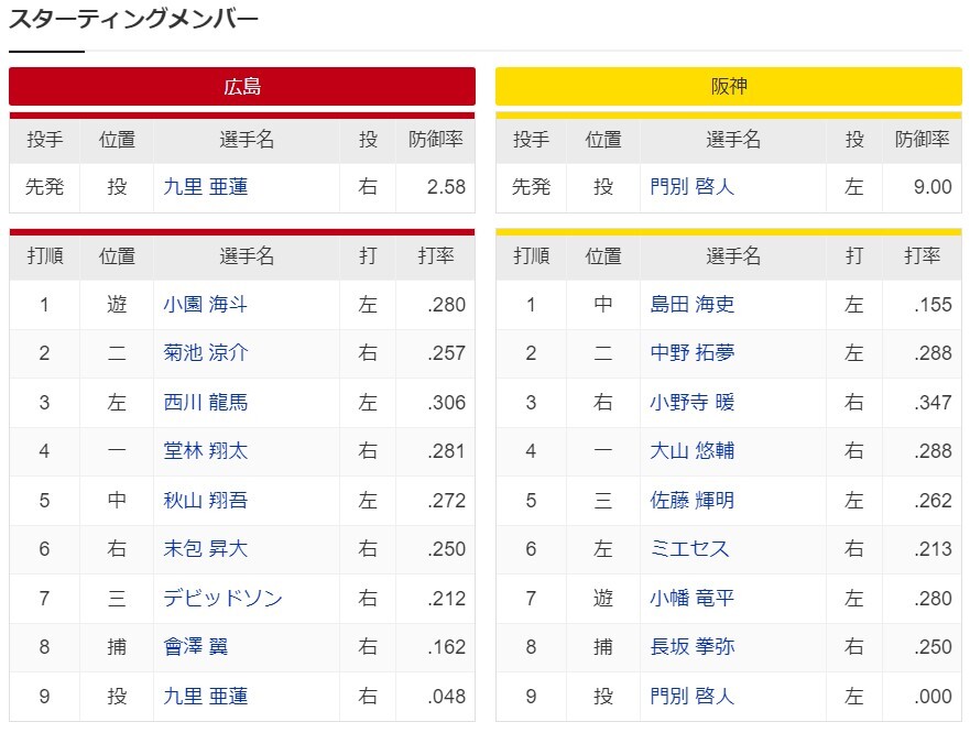 島田使うなら下位に置けよ小幡1番で使えマヌケ島田なんかに打席多く与えるな