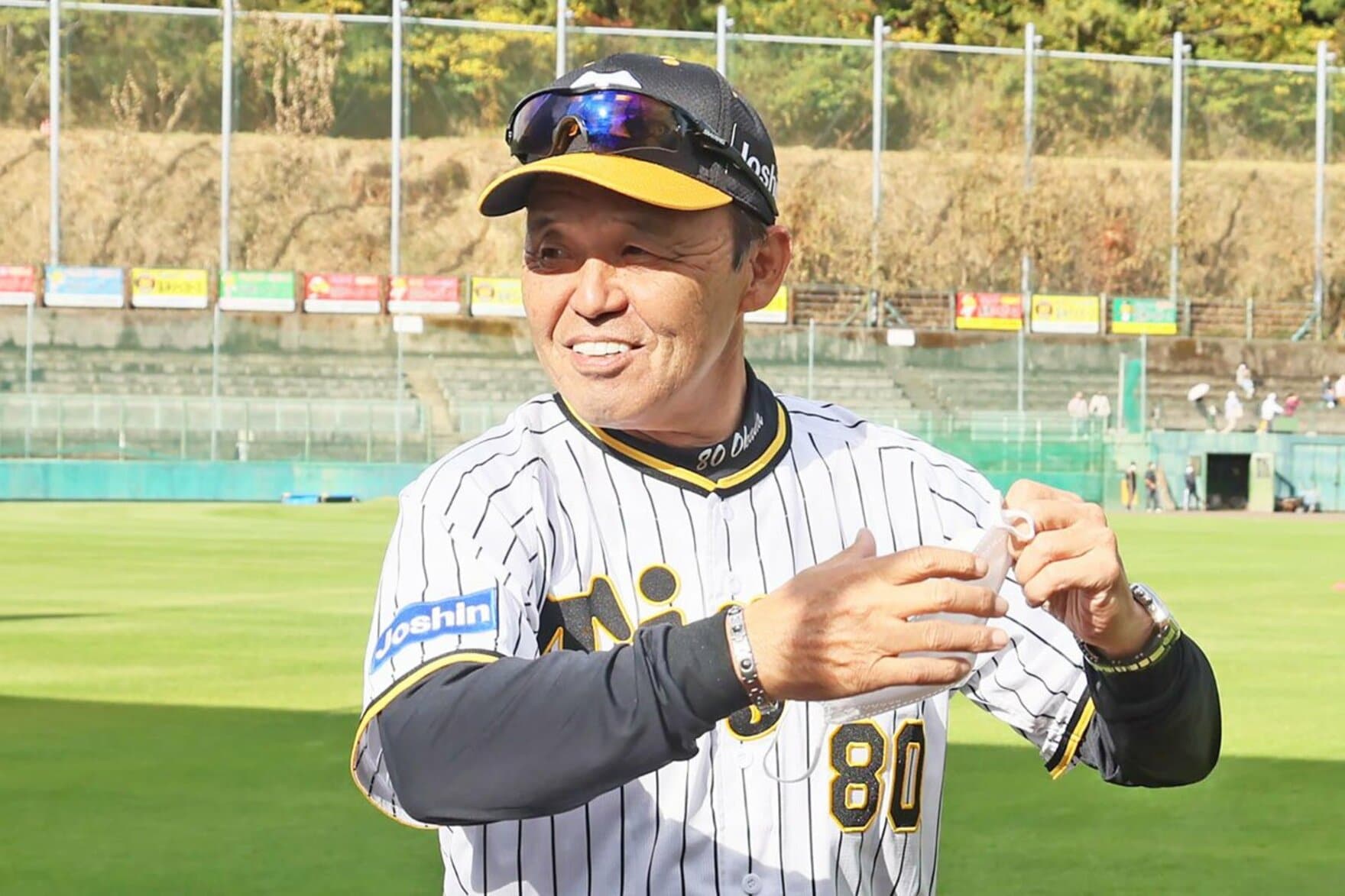 「サイン会かなんかがあってな。東プリに泊まっとったんや。そしたらオマエ朝7時くらいにな、部屋のドアをドンドンドンドンたたくヤツがおったんや。何やと思ってレンズをのぞいたら、パンツ1枚はいたシークやった(笑い)。ビックリしたわ。おお、もう。あれドア開けたらどうなってたんやろな。大変やったで。部屋間違えたと気付いて横の部屋にスーっと消えてったけどな」。岡田監督鉄板の〝すべらない話〟で、虎番一同大笑いさせてもらった。
