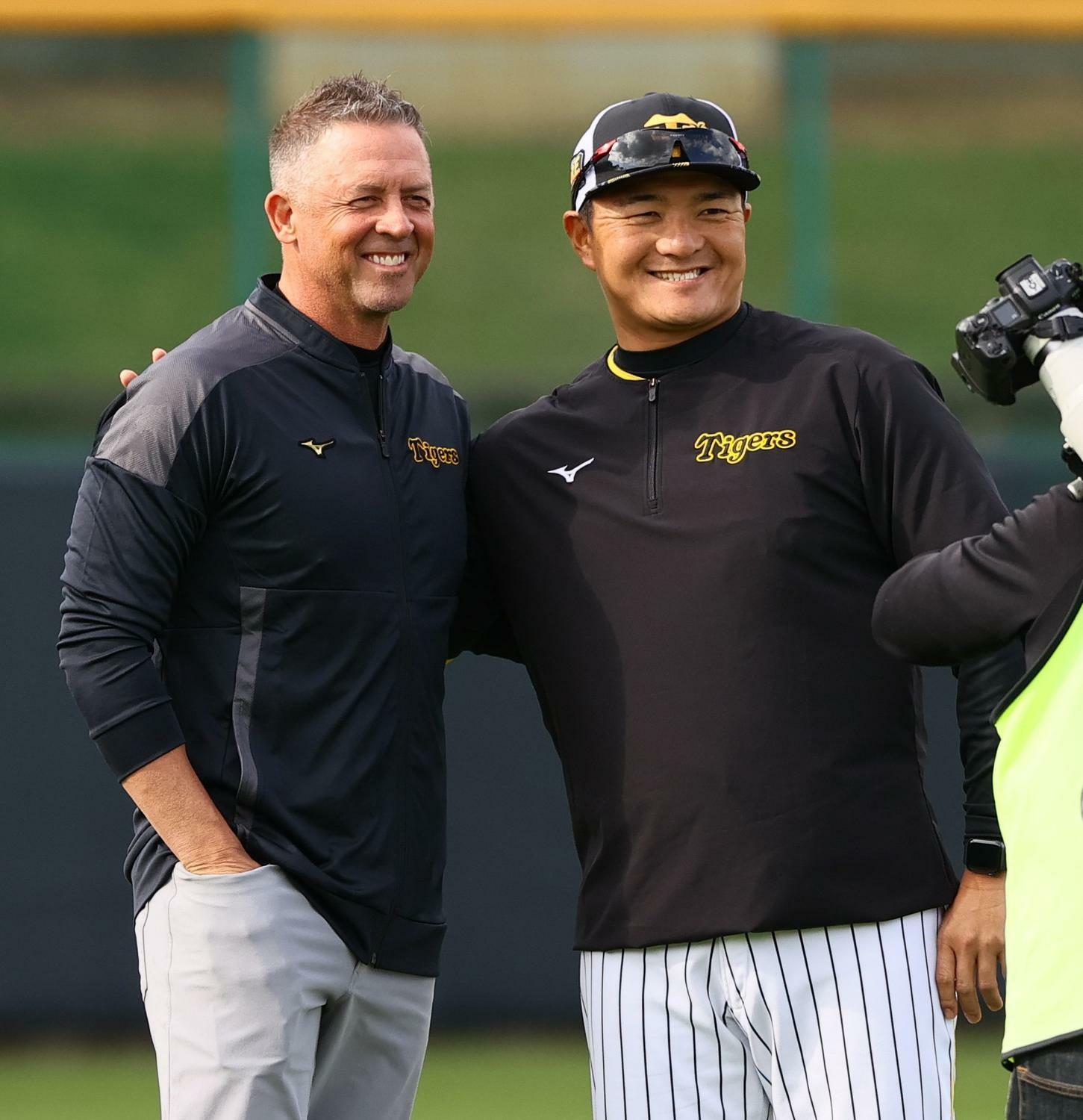 阪神駐米スカウトでOBのジェフ・ウィリアムス氏(51)が10日、沖縄・宜野座での春季キャンプ第3クール初日を来訪した。2年連続の視察。05年に岡田監督のもと勝利の方程式「JFK」の一角としてリーグ制覇に貢献した左腕は、久保田投手コーチとのツーショットに応じるなど、笑顔を見せた。