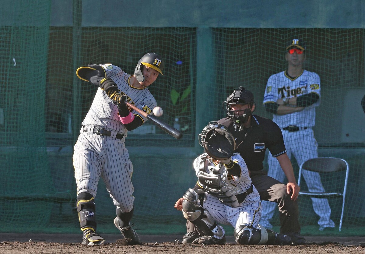 阪神佐藤輝明内野手(25)が「2番」で輝いた。第2打席は四球を選び、第3打席はやや差し込まれながらも、中前に力強いライナーではじき返した。1球1球、安芸の観客が息をのむ様子が伝わってきた。四球にはため息が漏れ、ヒットには大拍手。「勝ちたかったですね。詰まりながら持っていったので、次はもっといい打球を打ちたいです」と振り返った。「2番」は22年4月に6試合経験して以来。感想は「まだ分からない」と苦笑いしたが、藤川監督が2番に強打者を置くメジャー型を採用する可能性は十分ある。新任の小谷野打撃チーフコーチはオリックスで中嶋前監督が多彩な打線を組む過程を見てきた。「柔軟な組み替えはもちろんありだと思う。僕はちょっと前まで(組み替えの)すごさを学ばせてもらっていた。参考になるところは伝えていかないと、と思っている」と前向きにとらえた。佐藤輝は今キャンプ、右足を上げずにステップする打法にも挑戦中。「体重移動ができれば足を上げなくてもいい。また練習や実戦の中で考えながら。練習では分からないこともあるので」。
