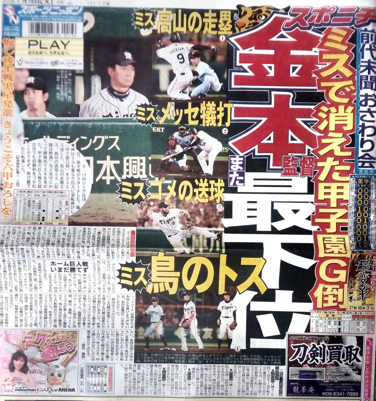 ニッカンは高山猛打賞!じゃなかった?