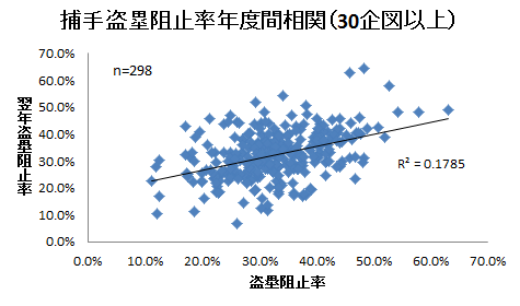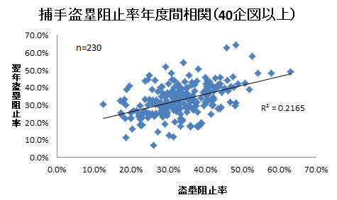 盗塁阻止率3割と言っても取り敢えず走られて3割なのか阻止の上手い捕手だと知られていて足に自信のある奴らだけが走って3割なのかで全く違うからな