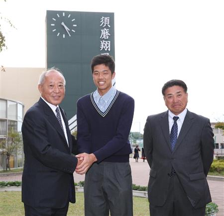 神戸市内の同校で指名あいさつを受けた。