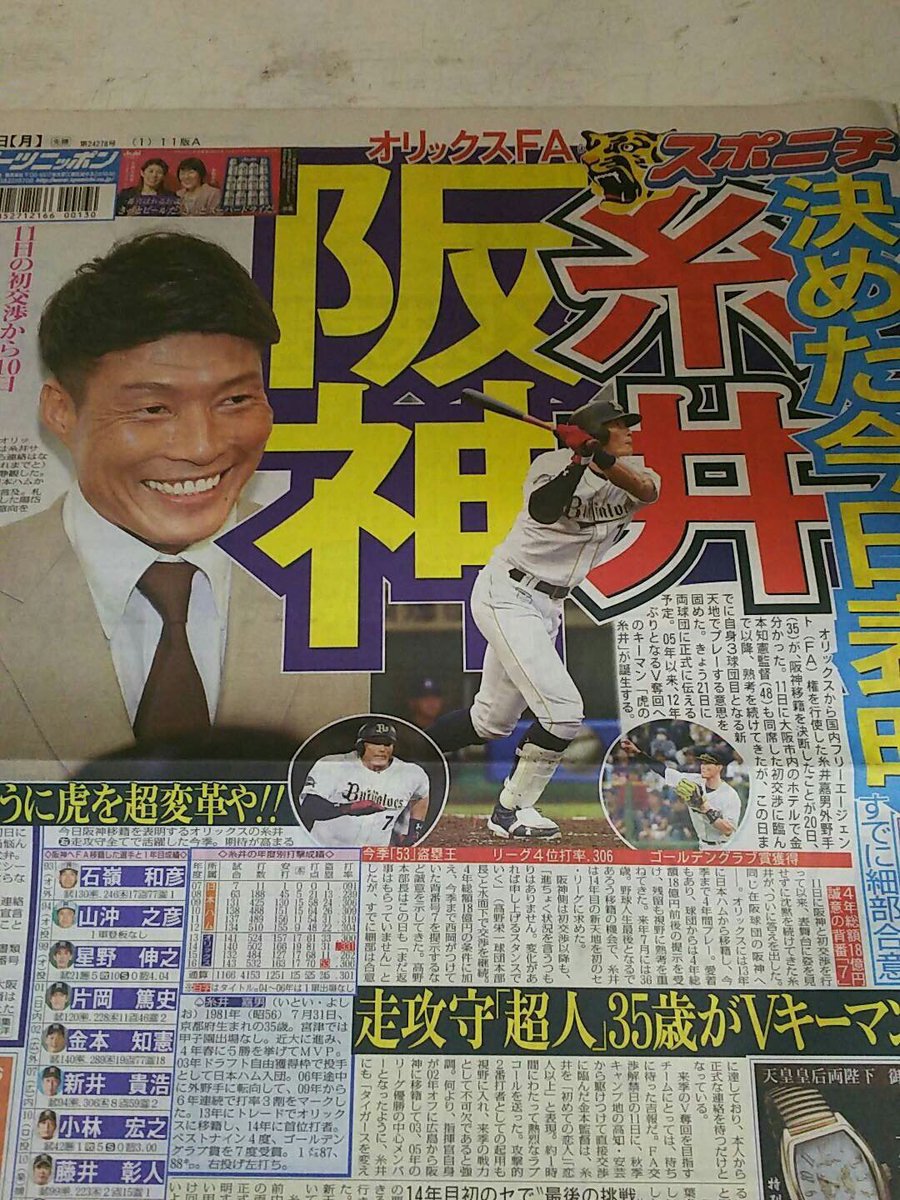 糸井阪神今日にも表明 「複数の阪神・オリックス関係者の話を総合すると今日21日表明」