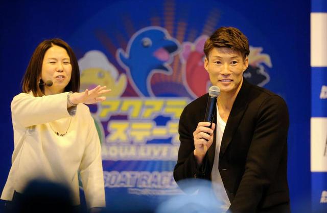 「ボートレース住之江」で行われたトークショーでの一幕。SMAPは今年で解散するが登場曲は変更するかとの問いに「どうしましょう」と迷いを見せたが…。