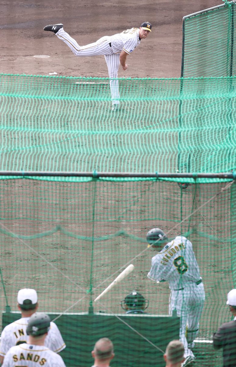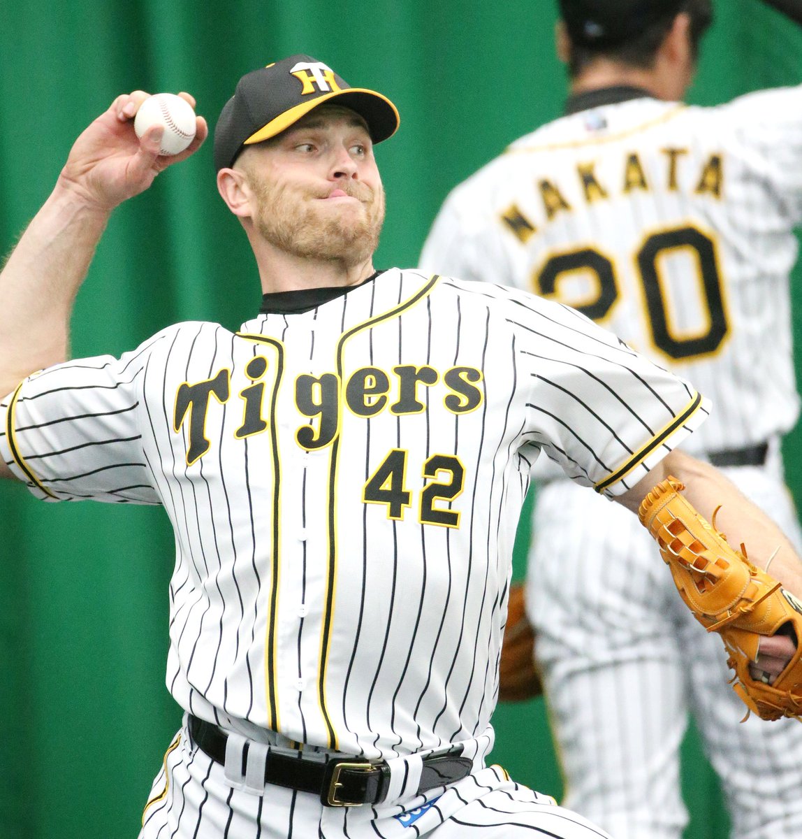 カーブも低めに制球され、仕上がりは上々だ。退団したジョンソン、ドリスに代わり、勝利の方程式入りが期待される新助っ人。力強い直球に指揮官がうなずくシーンも見られた。今後は次クール中にも、実戦のマウンドに上がる流れ。守護神・藤川につなぐ存在として、15年ぶりのリーグ優勝に新助っ人の活躍は欠かせない。