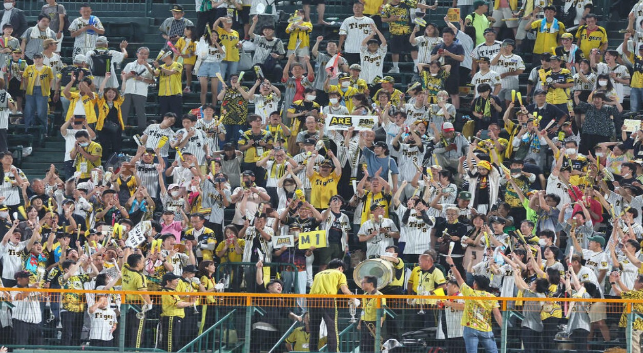 <阪神-巨人>◇13日◇甲子園優勝前夜祭や! 阪神-巨人戦が行われる甲子園で試合終了後、多くのファンが「M1」に歓喜の声を上げた。神宮で行われているヤクルト広島戦が阪神戦終了後、5-1でヤクルトが勝利。優勝マジックの対象になる2位広島が敗戦し、マジックがついに「1」となった。結果を知った瞬間、右翼席へ残った多くの虎党が歓喜の声を上げた。その後、ナインの応援歌を歌うなど優勝「前夜祭」ばりの大盛り上がりだった。