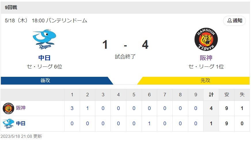 7連勝で貯金10やで!序盤の速攻は見事やったな!中野・ミエセス・ノイジーらの好守も光ったわ!6回1失点の力投を見せた伊藤将が2勝目!さぁ、明日から甲子園!まだまだ連勝街道突っ走るでー!