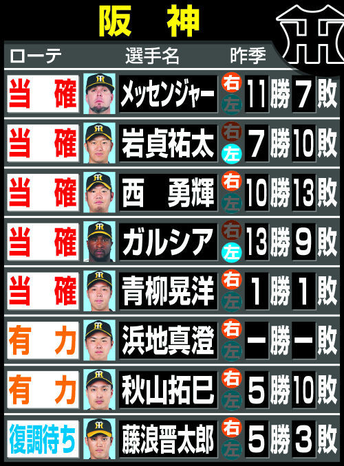 阪神矢野燿大監督が開幕ローテについて、4人が固まっていることを「まあまあ、そうじゃない」と認めた。 開幕投手の西勇をはじめ、高橋、青柳、新助っ人ガンケルが当確ランプをともしている。残り2枠を巡る争いとなるが、こちらは競争が続く。 「全体で(競争)。中田も精力的にやってくれてるし、アキ(秋山)もこの前いい投球をした。サダ(岩貞)やファームでは岩田もやし、晋太郎(藤浪)や小野ら。まだこれでいくと決められるところまではきていない」と話した。