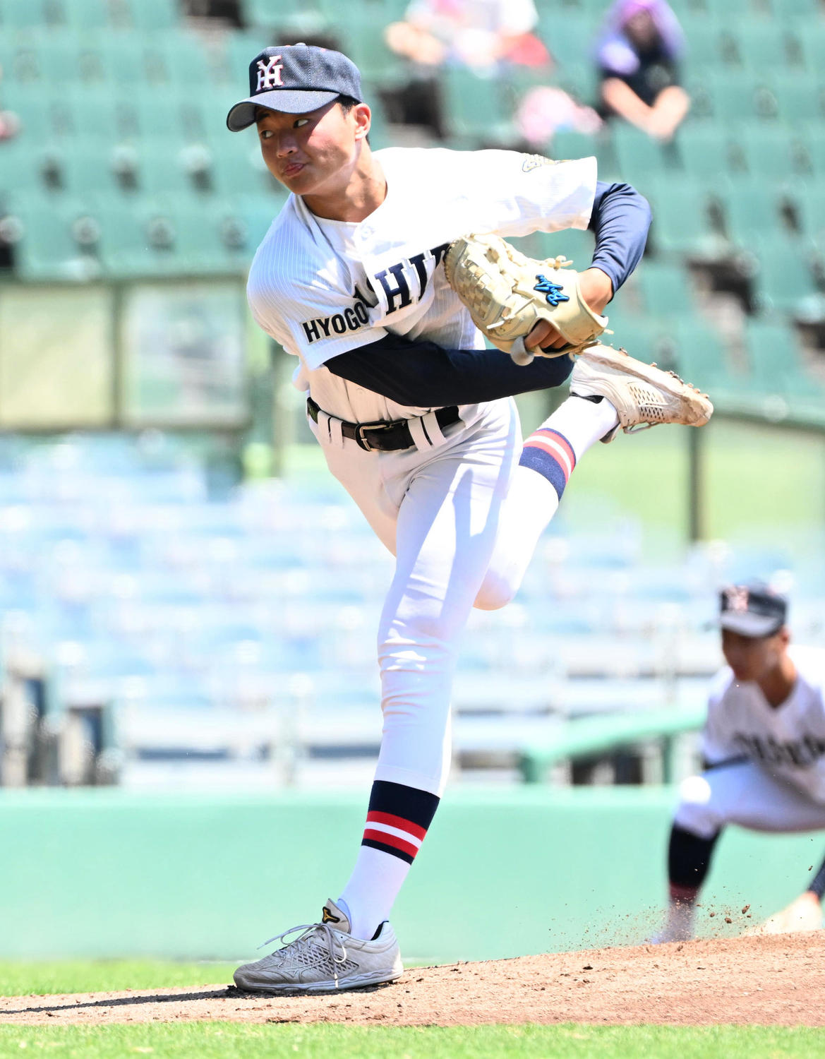 投げてはエースの高橋大和投手(3年)と2年の福田海晴投手(2年)の継投で明石商打線を抑えた。